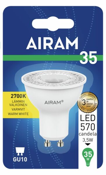 AiramPris 36 kr - Pris 36 krPris36 kr36 kr - 36 krPris 36 krPAR16 LED-reflektorlampa 3,5W 2700K GU10 265lm 570cd 36D (230lm/90D) 15000h. Produktblad: Ladda ned här